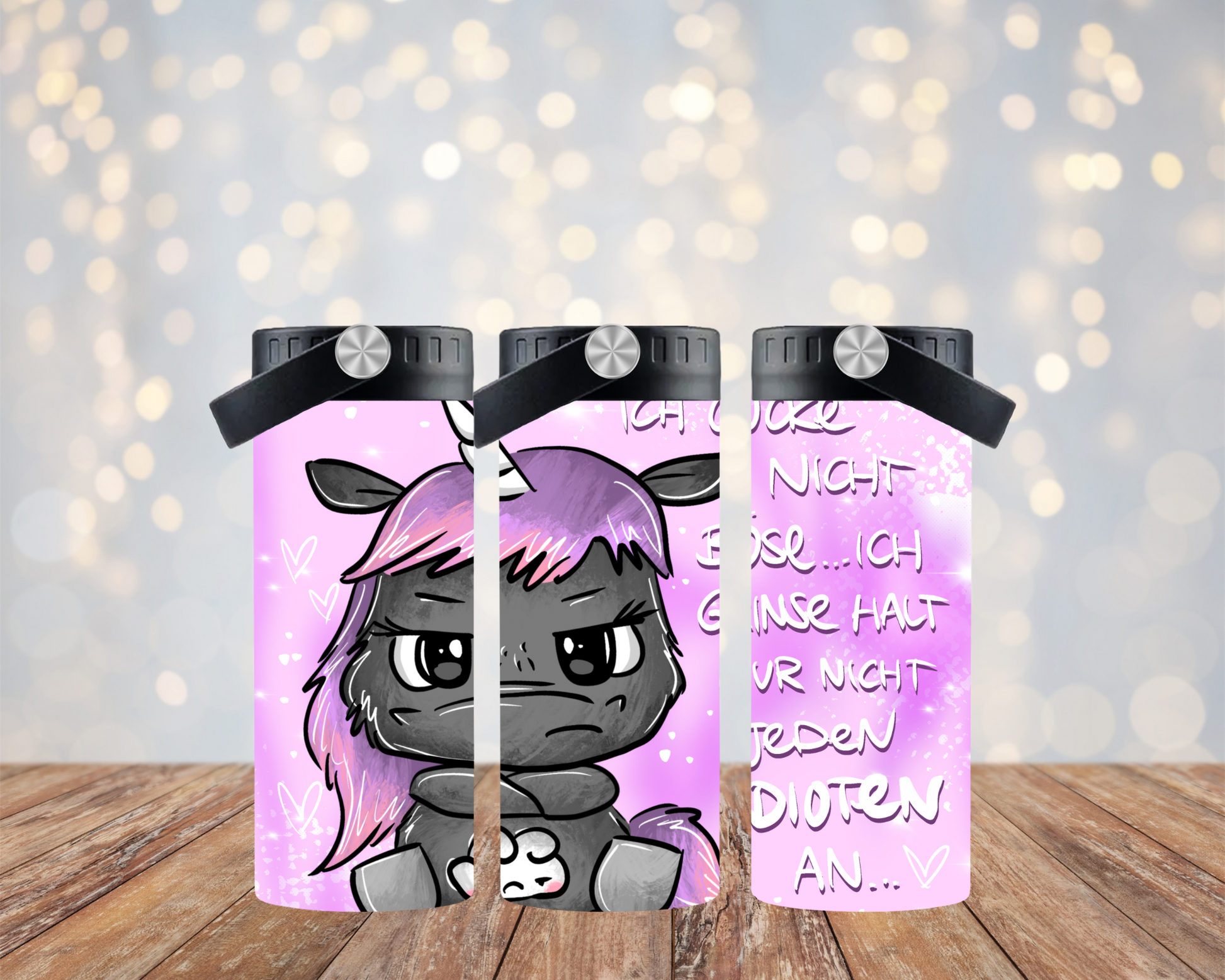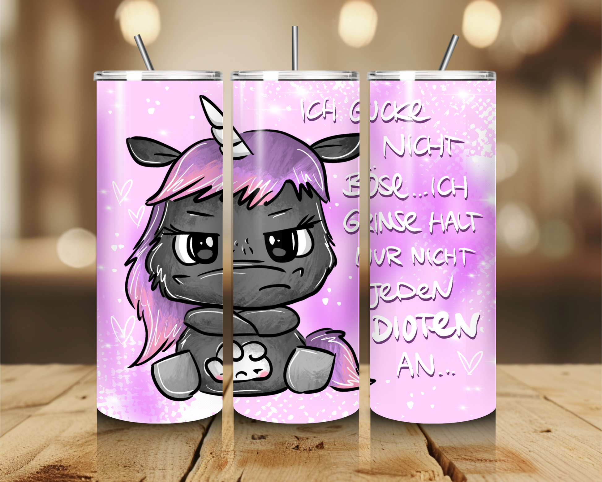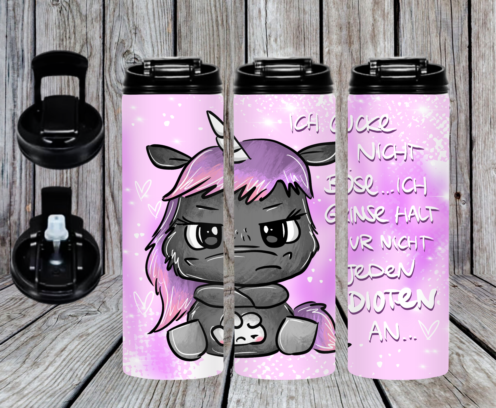 Die Motive werden im Sublimationsdruckverfahren unter starker Hitze auf den Tumbler gepresst.