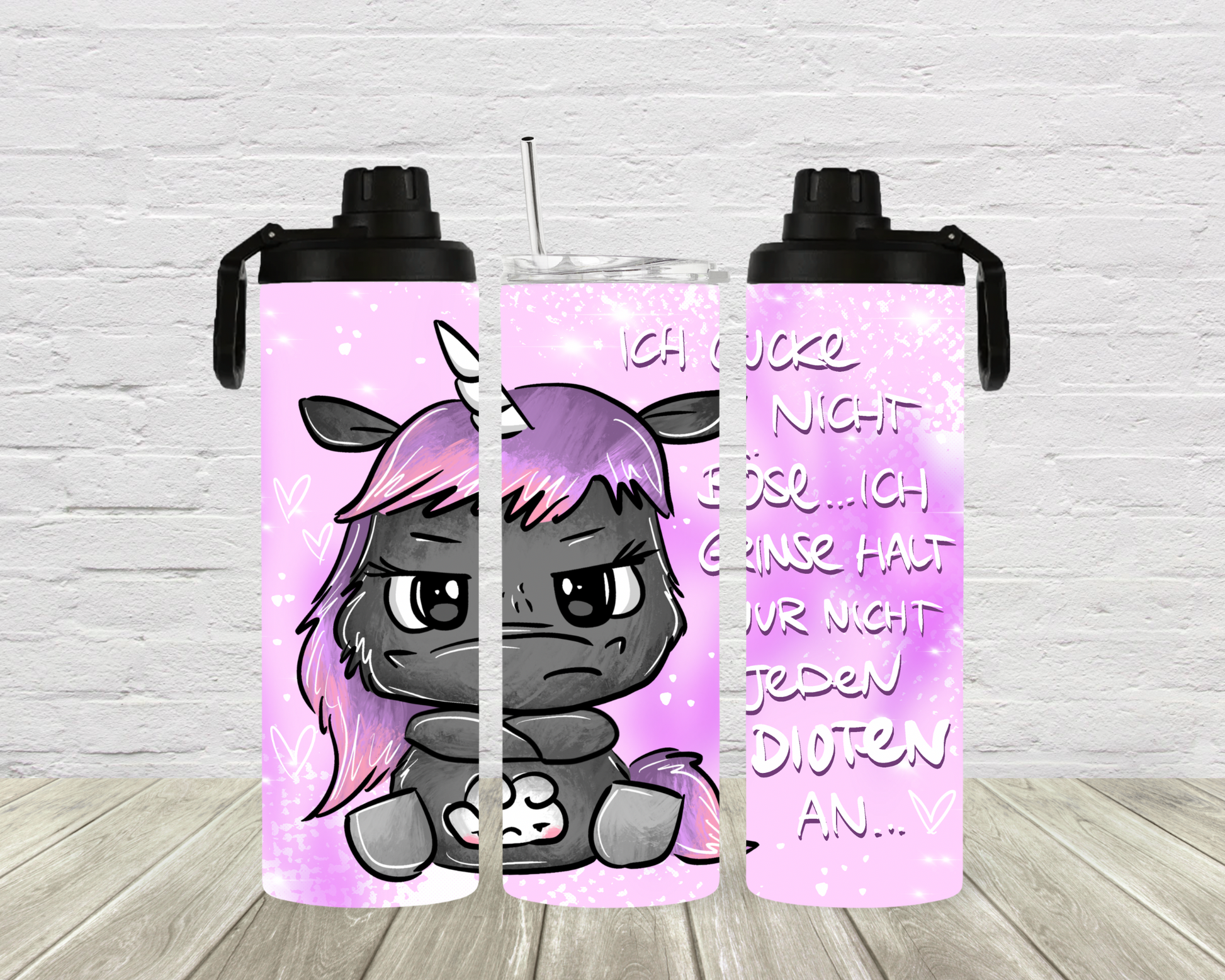 -glänzend mit Edelstahlstrohhalm und Bürste